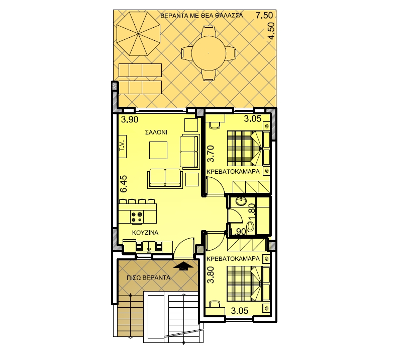 - δύο θέσεις σκεπαστού πάρκινγκ